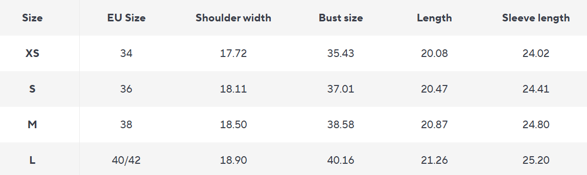 | Sleeve Length | Long Sleeves |