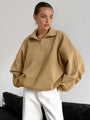 Minimalist ease with a refined edge. The LAPEL ZIPPER pullover is cut to a relaxed silhouette, defined by a structured lapel collar and half-zip front closure. Crafted in a soft polyester-elastane blend, it offers moderate stretch for comfort and flexibility while maintaining a polished appearance.