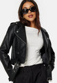 This cropped biker jacket from Isavara redefines a classic icon with sharp modern tailoring. Crafted from supple faux leather, it features silver-tone hardware, a belted waist, and precise panel stitching for a structured finish. The cropped silhouette adds a contemporary edge, pairing seamlessly with high-waisted trousers or skirts for a confident, urban look.