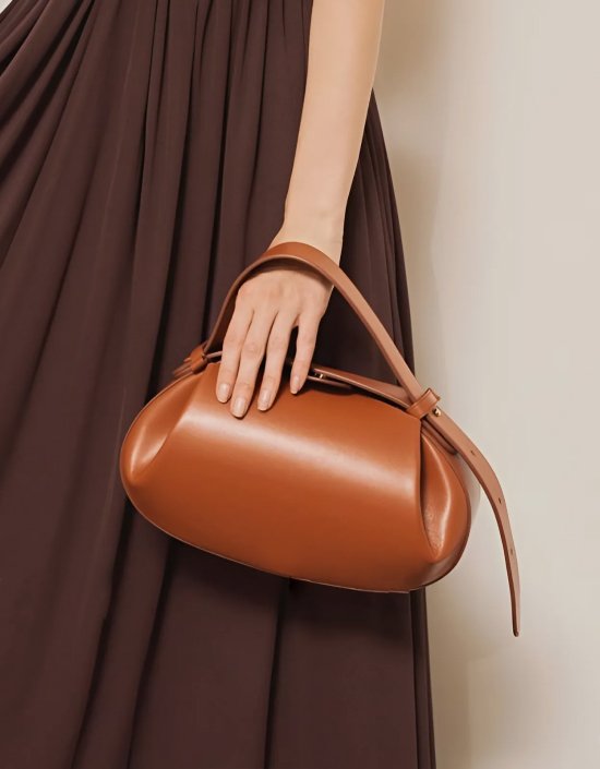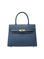 A structured handbag crafted in smooth cowhide with a subtle textured finish. Defined by clean lines and a gold turn-lock fastening, the silhouette balances refinement with practicality.
