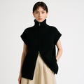 This ribbed zip vest captures the essence of quiet luxury. The thick, structured knit and high collar create a sculptural silhouette that balances softness with precision.