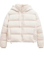 This short padded jacket from Isavara is designed for modern comfort and subtle sophistication. Its cropped silhouette and quilted construction offer a balanced combination of warmth and lightness. The hood and full zip closure ensure practicality, while the clean lines and soft neutral tone bring an effortlessly refined look to winter layering.