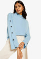 Relaxed fit with button sleeve accents and high ribbed neckline.
