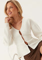This white V-neck top from Isavara is crafted from a soft scuba-inspired knit, offering both comfort and subtle structure. Its minimalist silhouette and smooth texture give a clean, refined aesthetic suitable for work or evening wear. Designed to move with the body, it strikes the perfect balance between modern tailoring and relaxed sophistication.