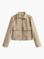 This short jacket from Isavara balances modern structure with quiet refinement. Crafted from a soft wool blend, it features a clean silhouette with functional flap pockets and a smooth zip fastening. The tactile texture and neutral tone make it a versatile layer for the colder months.